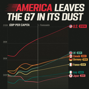 展望未来,IMF认为,2029年美国的人均GDP将达到约10.1万美元,远远高于其他G7国家。而英国的人均GDP水平将达到约6.7万美元,排名将从第四攀升至第二。
