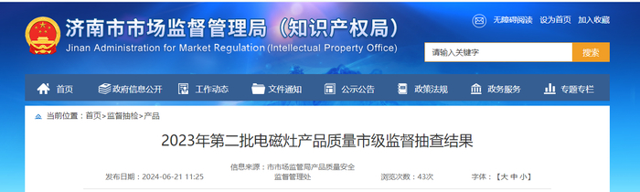 【山东省济南市】2023年第二批电磁灶产品质量市级监督抽查结果