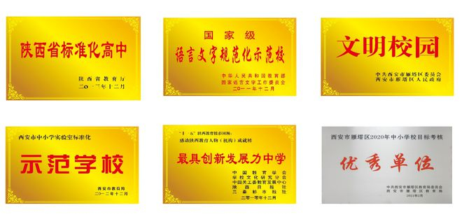 近几年,在市、区教育局及社会各界的大力支持关怀下,和西安雁南中学全体教职工的共同努力下,教学质量、特色发展等各项工作均取得了优异成绩。先后获得“国家级语言文字规范化示范学校”、陕西省学校发展水平“316 工程”督导评估优秀学校、“最具创新发展力中学” “文明校园”“平安校园”“绿色校园”“西安市新课标新高考英语、语文教学研究基地学校”、陕西省体育(田径、排球)传统学校、陕西师范大学优秀实习基地、“西安建筑科技大学、西安电子科技大学、西安石油大学、西安邮电大学、西安外国语大学优质生源基地”等称号。多名学生在全国数学、生物和信息技术 奥赛中获得一、二、三等奖,400 余名学生在省、市、区各类美术、音乐、体育比赛中获奖 600 余项。生源质量稳步提高,中、高考成绩逐年提升。