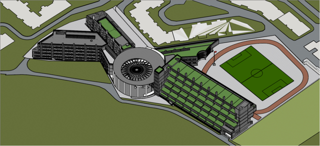 圆厅作为连接各楼的“枢纽”,其功能性不容忽视。它使校园的各个区域紧密相连,形成了一个高效、便捷的教育教学网络。通过连廊的设计,即使在恶劣的天气条件下,学生也能安全、快速地从一个区域移动到另一个区域,确保了教育教学活动的顺利进行。这种布局不仅提高了校园的空间利用效率,还使得校园内的各个区域都能相互呼应、相互支持。