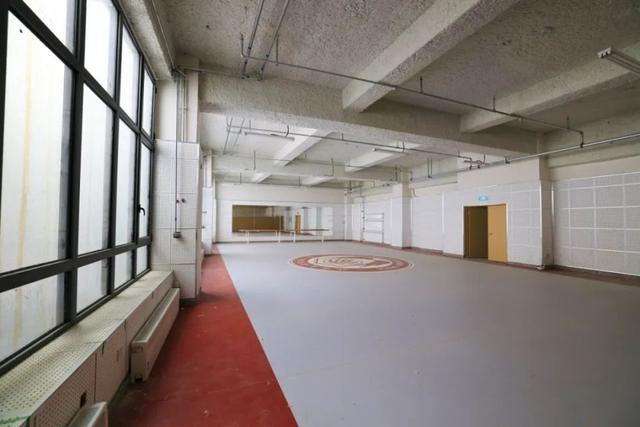舞蹈教室占地300平米,落地大镜子和把杆已安装完毕。舞蹈教室中央还有北京大学附属小学教育集团的标识,醒目而有特色,同学们将在这里尽情释放自我,快乐舞蹈。