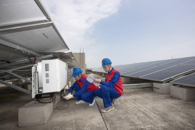 6月25日,国家电网四川电力(绵阳)连心桥共产党员服务队为四川爱创科技有限公司维护光伏发电及生产线用电设备。(田海 摄 )