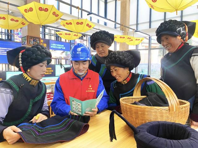 2023年12月15日,国家电网四川电力(凉山越西)连心桥共产党员服务队队员童欢在凉山州越西县普雄镇呷古村为绣娘讲解安全用电知识。(李静 摄)