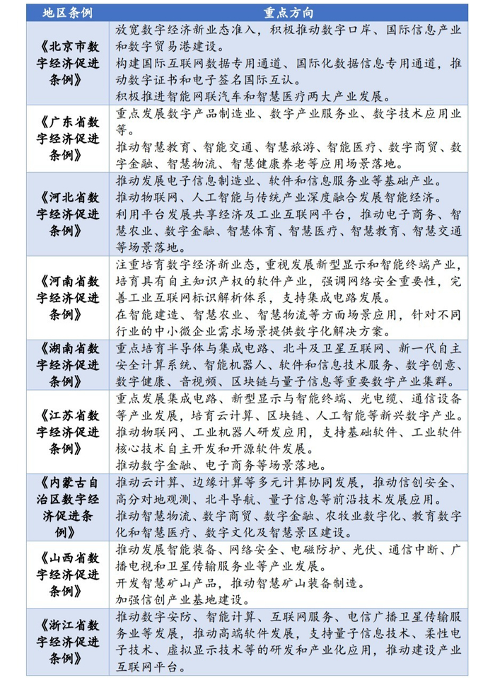 附表:九地发展数字经济重点方向