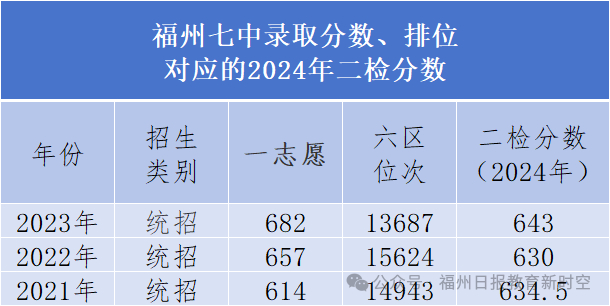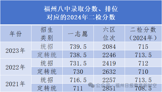 高保线降了!福州一类校历年录取线对应的二检排位↓