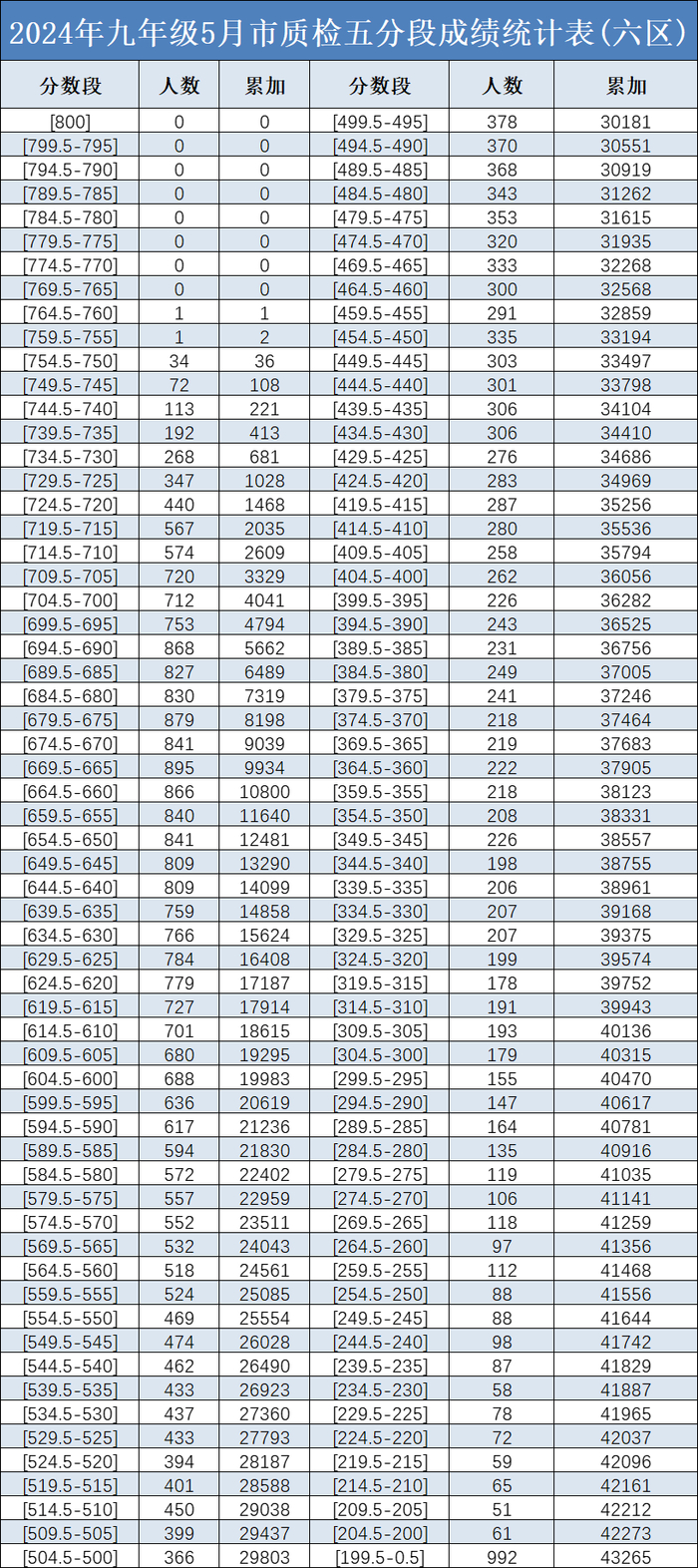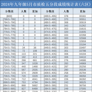 注:上述表格中的六区位次和对应的2024年二检分数,按照每5分段内各分数平均分布情况估算,非精准数值,仅供参考。