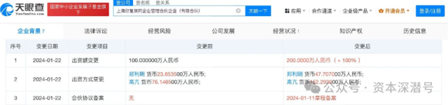事实上,这还不是衍复今年的人才团队上的全部动作。来自天眼查的信息显示,衍复投资在今年为另一位核心人物增配了股权(下图)。