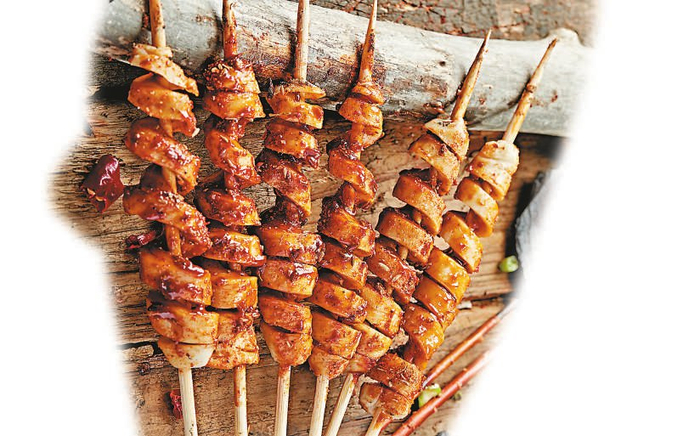 至于夜市烧烤摊或店里常见的烤面筋,是食品流水线上统一制作而成的,经卷紧、煮熟、切割,大小一致、花刀均匀,类似弹簧状,表面积大幅度增加,能够尽可能多地挂上酱汁。