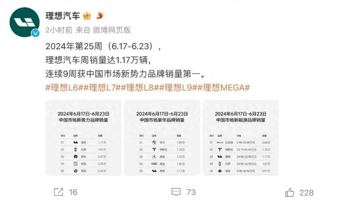 对此,理想汽车回应,“停发榜单后,很多用户在进店购买车辆时都会询问理想汽车的销量情况,产品的销量是很多用户做出购买决策的重要依据,一线伙伴需要真实的数据向用户进行说明。”