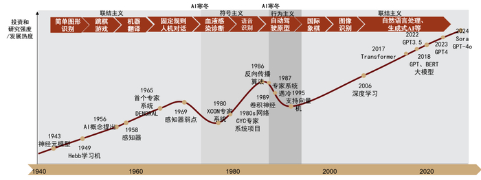 注:图中纵轴表示的是人工智能发展热度&水平综合程度,用投资&研究=f(期望,成果)来表示。