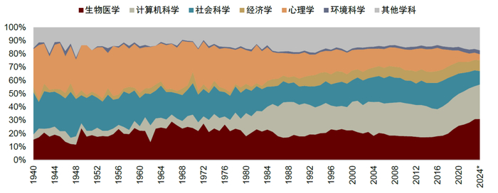 注:该图统计时合并了部分学科,统计时间截至2024年4月。