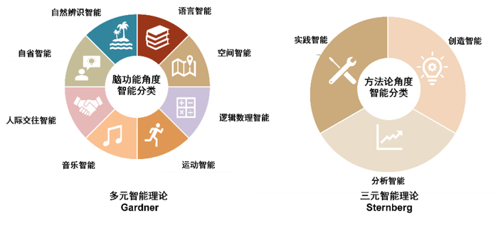 资料来源:Gardner H,Multiple intelligences: The theory in practice,1993;Sternberg R J,Beyond IQ: A Triarchic Theory of Human Intelligence,1985;中金研究院