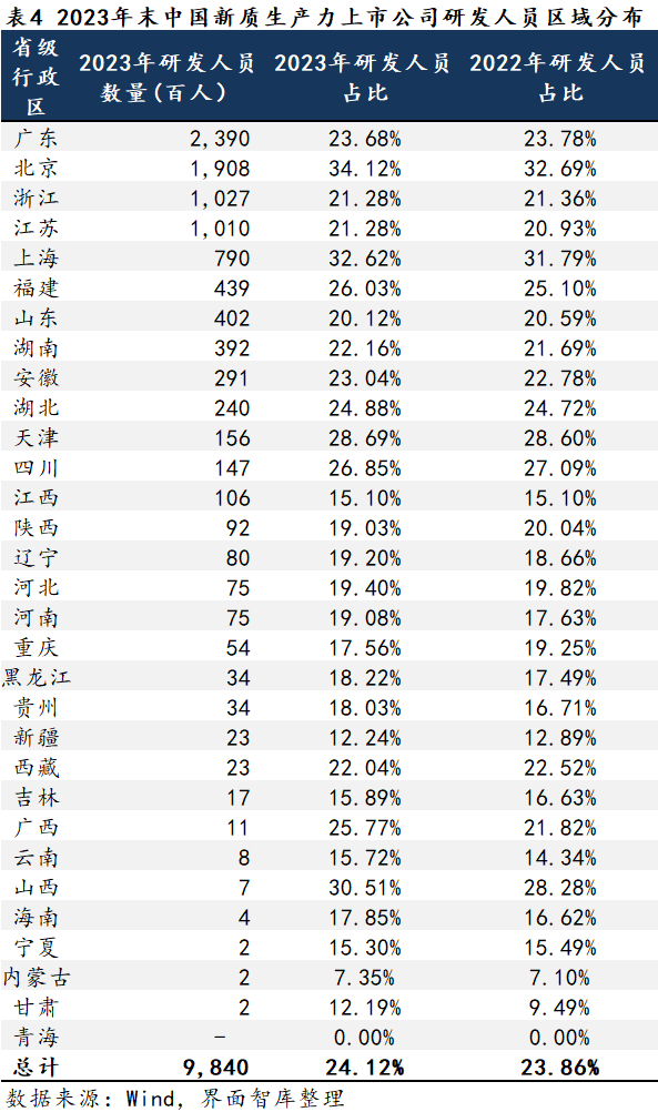 四、新质生产力公司研发人员:北京和上海占比超30%,湖南、湖北和安徽表现抢眼