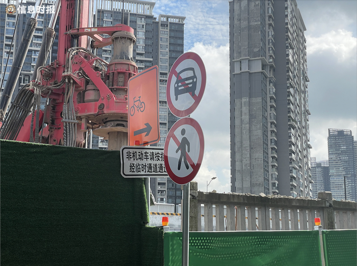 上桥和下桥处都设置了醒目的告示,提醒非机动车辆按照指引经新设置的慢行道通过,现场有交通协管员进行交通指引和疏导。