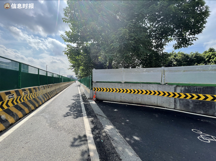 近日,广州珠江大桥西桥慢行道开放使用,原来位于西桥两侧的非机动车道及人行道被围蔽,新的慢行道成为荔湾区滘口附近片区市民电动自行车过江的主要通道。