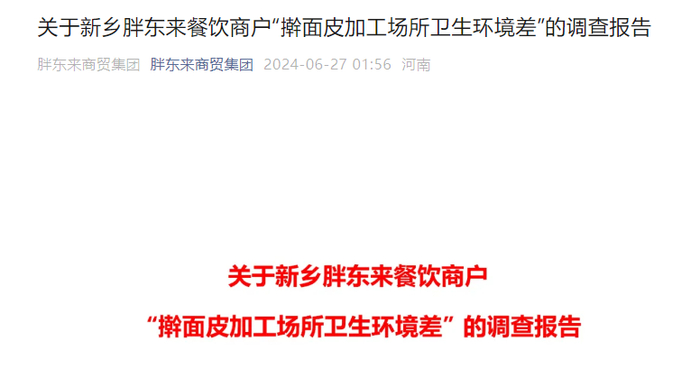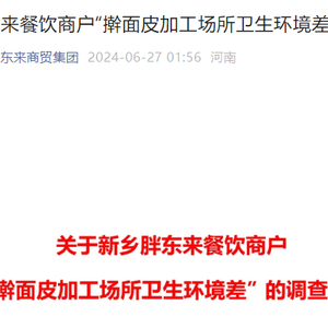 财联社6月27日讯,今日凌晨,“胖东来商贸集团”官方公号发布《关于新乡胖东来餐饮商户“擀面皮加工场所卫生环境差”的调查报告》。