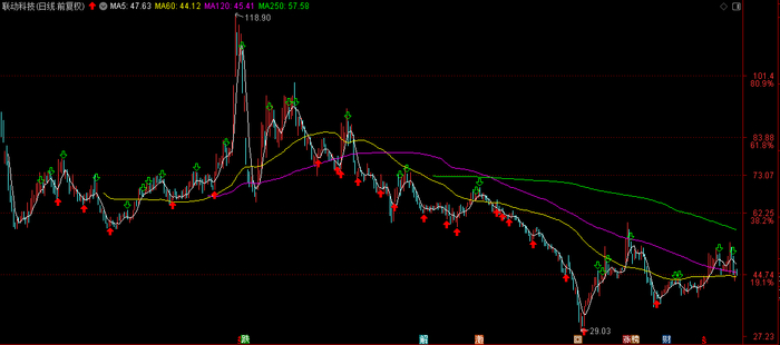 从股价表现来看,联动科技自上市以来经历了较大的波动。公司股价最高曾达到118.43元(前复权形式),但随后出现大幅下跌,最低跌至29.09元,股价最大回撤幅度高达75.44%。