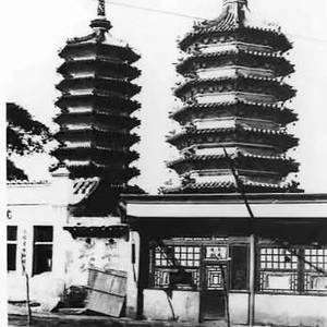 明嘉靖十四年(1535)一场大火将重重殿堂化为灰烬,只留下孤零零两座砖塔。清乾隆年间,在双塔旁建了一所寺庙名双塔寺,但其规模远不能与庆寿寺相比。清末,这所小庙逐渐荒废,双塔仍然矗立原地。1955年在拓宽长安街时,双塔被拆除。