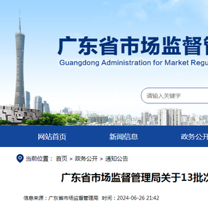 广东省市场监督管理局关于13批次食品不合格情况的通告(2024年第24期)