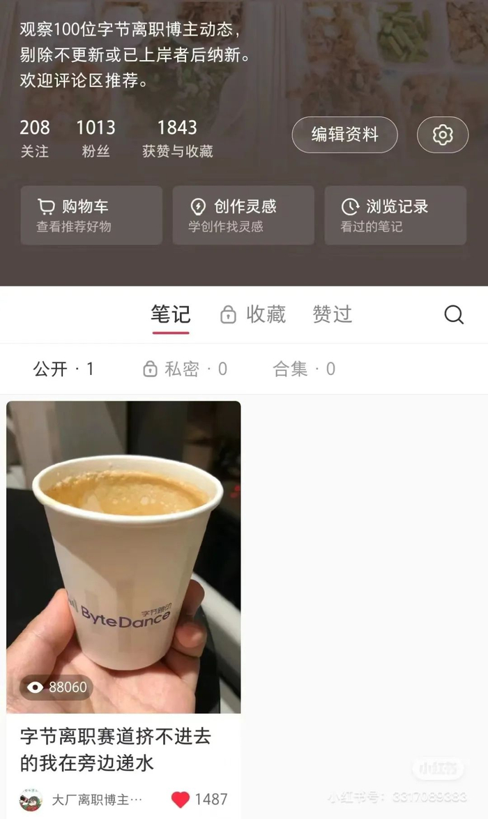 虽然第一篇笔记就引来8万次的浏览量,观察员也并未考虑变现。“当初是无心插柳做着玩的。”他半个多月观察下来,离职博主内容偏同质化,如果后期没有新内容或新对象,可能观察50个、100个就截止了,不会为了观察而观察。