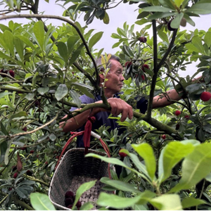 每年的杨梅产季只有短暂一个月,最晚也只到7月上旬。但种植期却需一年,不仅要躲避春寒,还要躲避夏季的多雨——多雨会让杨梅口味变淡,不宜卖出好价钱。等到成熟时节,工人要辛苦地上山采摘,山体陡峭,既要保护好杨梅不散落一地,又要保护好自己不要摔下山。