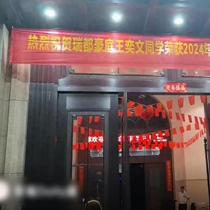 6月27日,瑞都豪庭小区住户阮女士告诉记者,25日晚,小区业委会放了烟花、挂了横幅祝贺王奕文。当晚还有不少人在小区群聊里祝贺她,自己便也跟着发了一条“沾沾喜气”。该小区商户何先生称,高考成绩公布当晚七八点,他听到烟花声,还以为是哪家店新开业,出门才发现是小区在放烟花,还挂起了横幅。