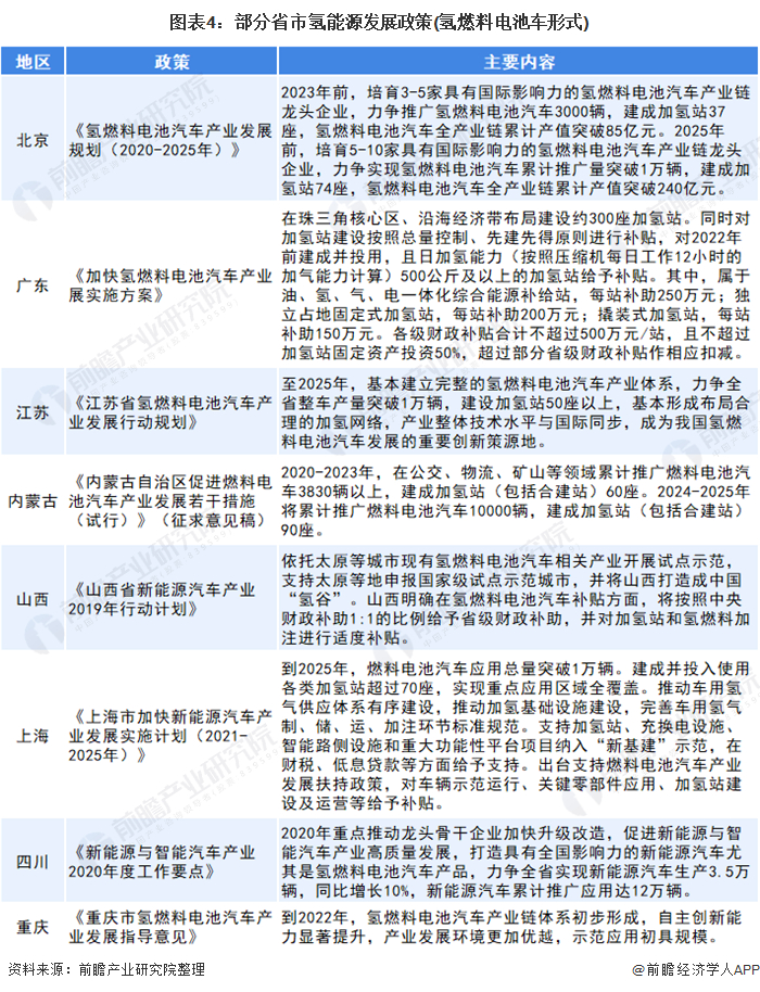 而在氢能源产业建设中,加氢站最直接的应用场景即为氢燃料电池车。从氢能源下游应用来看,短期内,氢能源具备成本竞争力的应用场景主要为交通运输领域,包括区域列车、中型重型卡车、长途车、出租车队、叉车等氢燃料汽车。各省市的氢能源相关政策多数是以氢燃料电池车、新能源汽车相关政策的形式发布。