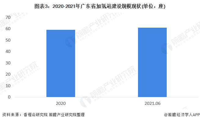 据香橙会研究院公开数据显示,截至2020年,广东省已建成、在建、拟建的加氢站累计为到59座。截止至2021年6月,广东省已建成、在建、拟建的加氢站累计达到61座。