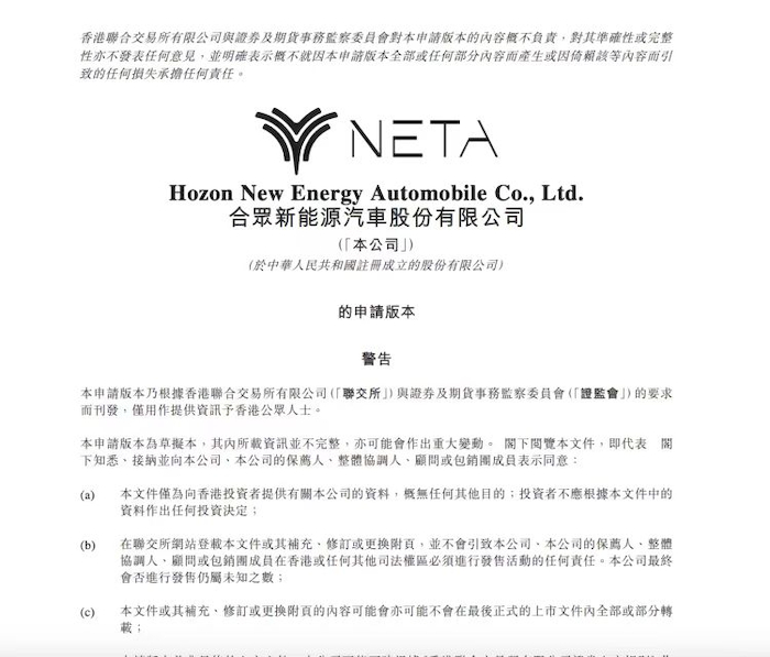 都市快报讯 6月26日,哪吒汽车母公司合众新能源向港交所递交上市申请。如果申请通过,哪吒汽车有望成为继蔚来、理想、小鹏、零跑后第五家港股IPO的新势力车企。