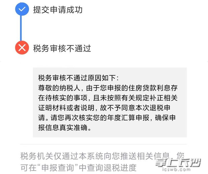 “由于您申报的住房贷款利息存在待核实的事项,且未按照有关规定补正相关证明材料或者说明,故不予同意本次退税申请。”前两年都很顺利的事,今年他却接连收到号码123660和个人所得税APP发来的如上提示消息。