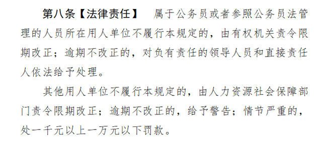 其他用人单位不履行本规定的,由人力资源社会保障部门责令限期改正;逾期不改正的,给予警告;情节严重的,处一千元以上一万元以下罚款。