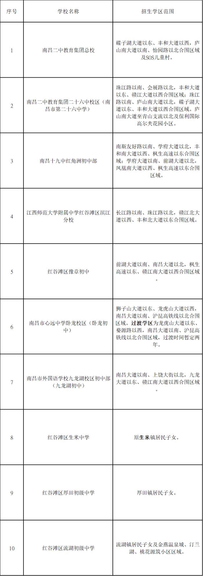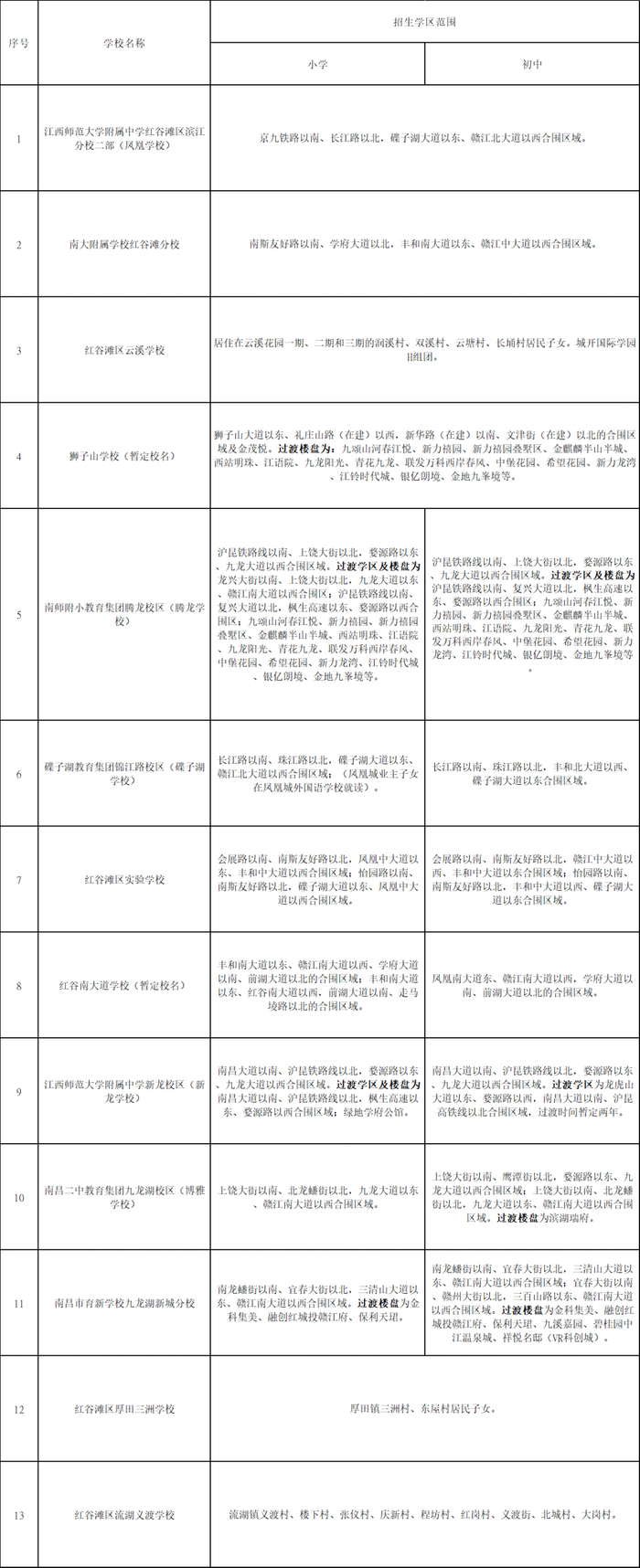 招生范围:1.长麦路以东、昌九高速以西、红湾公路(新建段)以北至经开区的合围区域;2.礼步湖大道以东、红湾公路(新建段)以南、昌九高速以西、新建大道以北的合围区域。