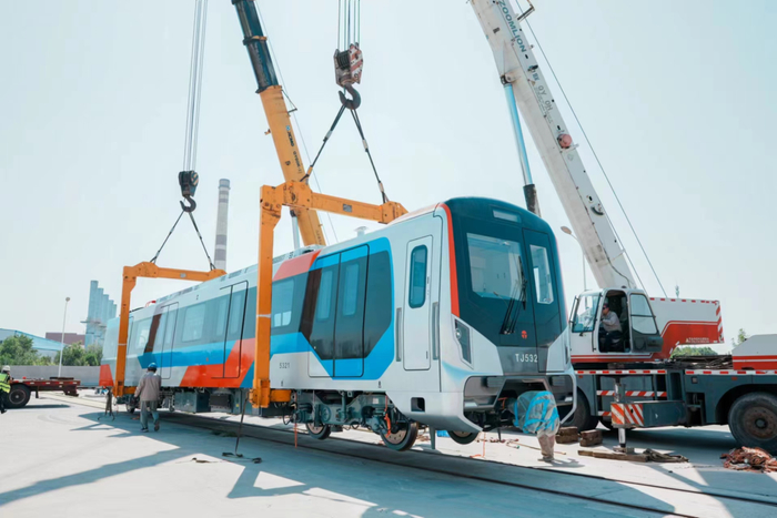 记者从天津轨道交通集团获悉,2024年6月25日,天津地铁5号线调整工程首列电客车顺利运抵梨园头车辆段,后续将开展静动态调试等工作。