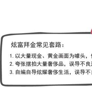 今天将为大家继续揭露自媒体无底线博流量“炫富拜金”的常用套路、典型案例及处置措施。