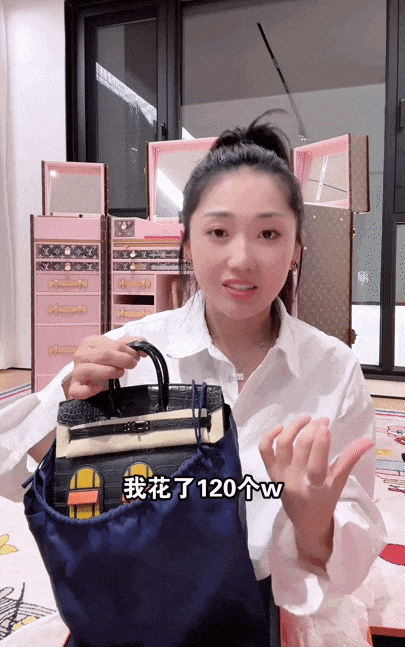 账号“吕大美人不美”(粉丝量:1710)为了蹭炒流量,经常发布摆拍奢侈品拆箱视频、明星同款开箱视频,炫耀“富有”生活。在视频“爱马仕黑房子 我这个人没什么耐心”中,UP主在屏幕上特意打出“120个W”字样,强调包包价格昂贵,多次表达“哪怕是在爱*仕,你花再多的钱你也要等,我完全没有耐心去等。”推崇物质崇拜,强调及时享乐,误导青年价值认知。