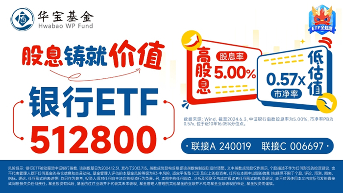 长江证券表示,银行股估值低、股息率高,优质银行保持稳定分红,红利价值重估远未结束。此外,作为配置型资产,银行股向下安全边际由股息率支撑,同时兼具顺周期属性,如果经济企稳,向上同样存在估值弹性。布局工具上,看好银行板块行情持续性的投资者可以关注银行ETF(512800),银行ETF被动跟踪中证银行指数,成份股囊括A股市场42只上市银行,近三成仓位布局工商银行、中国银行、邮储银行等国有大行,捕捉“高股息”主题机会;约七成仓位聚焦招商银行、兴业银行、西安银行等高成长性股份行、城商行、农商行,是跟踪银行板块行情的高效投资工具。
