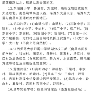 2024南昌多地小学、初中学校招生学区范围公告