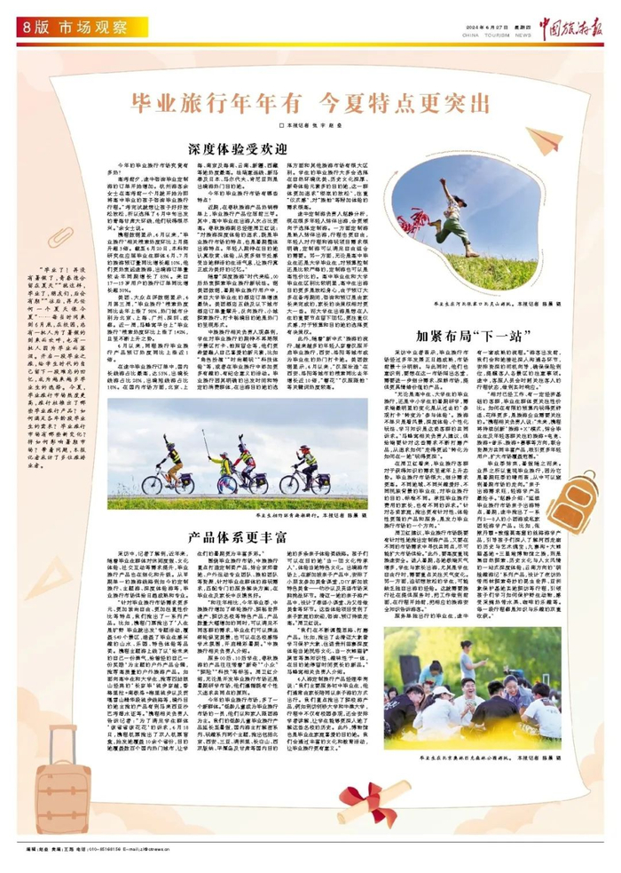采访中,记者了解到,近年来,随着毕业生群体对休闲度假、文化体验、社交互动等需求提升,毕业旅行产品也在细化和升级。从早期单一的旅游线路到如今的定制旅行、主题游、深度体验游等,毕业旅行市场供给日趋成熟和专业。