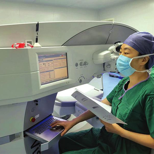 石磊在“全飞秒”手术正式开始前核对数据。