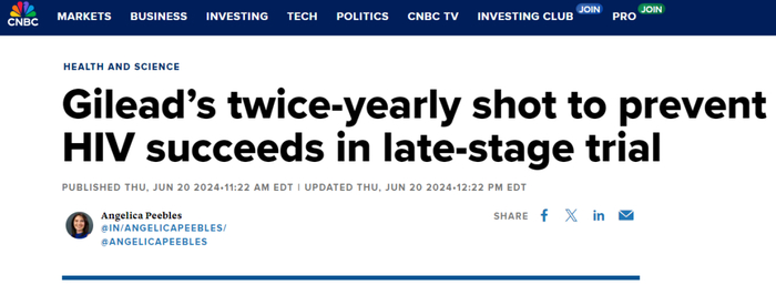 在这次的双盲随机研究试验中,注射了吉利德生产的“Lenacapavir”(来那卡帕韦)的2134名女性,感染病例为0例。