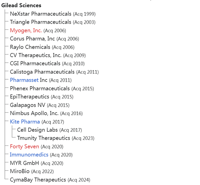 一系列收购下来,创立不到40年的吉利德,也跻身全球医药头部公司。