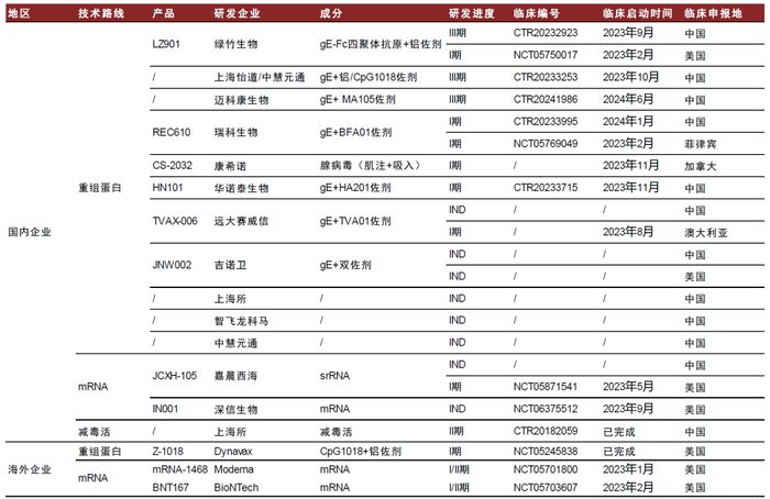 图表:全球部分带状疱疹企业产品设计(截至2024年5月)