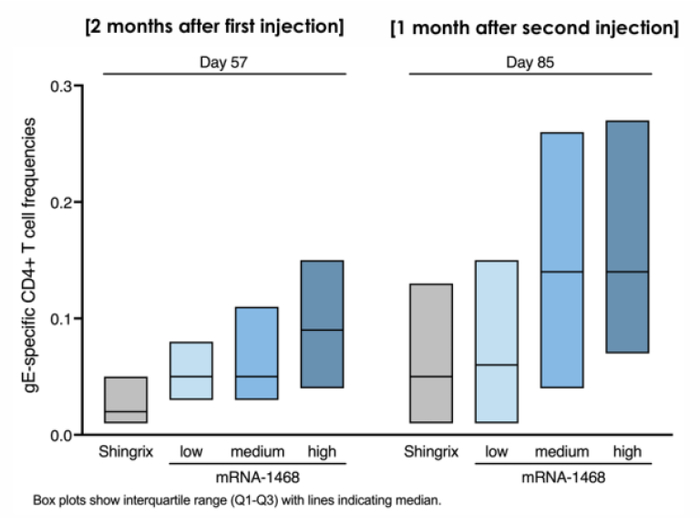 图表:I/II期:mRNA-1468诱导CD4+T细胞反应