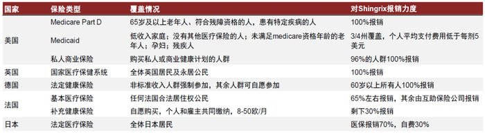 图表:海外部分国家Shingrix报销政策(截至2023年底)