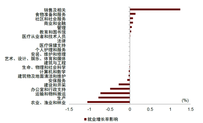 图表4.7:未来十年AI对各职业类别就业增长率影响的估算