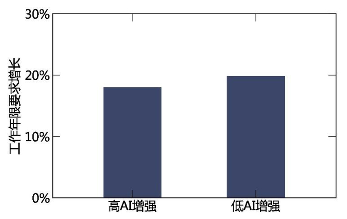 图表4.13:AI增强效应强的职业对经验的要求增长慢