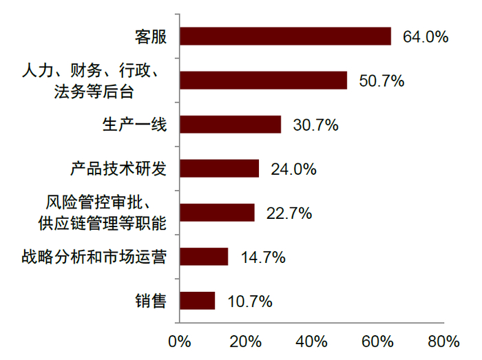 注:图表所示为2024年4月中金公司进行的上市公司问卷调查结果,具体问题为“未来三年哪些岗位很可能被AI替代?”。