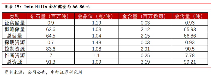 Twin Hills金矿是银泰黄金的第一个海外项目,符合公司发展战略规划,有助于进一步丰富公司的黄金资源储备。预计金矿投产后将显著提升银泰黄金的矿产金产量,项目的实施将为公司带来新的增长点,助力公司实现其矿产金产量的规划目标。
