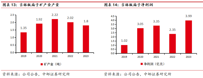 2023年吉林板庙子产金1.8吨,贡献3.99亿净利润。