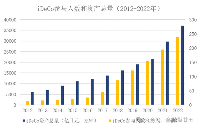 与我国2022年推出的“个人养老金”类似,日本iDeCo(individual Defined ContributionPension)缴费确定型养老金是日本养老体系第三支柱的重要组成部分,也是近年来日本政府主推的个人养老金产品。